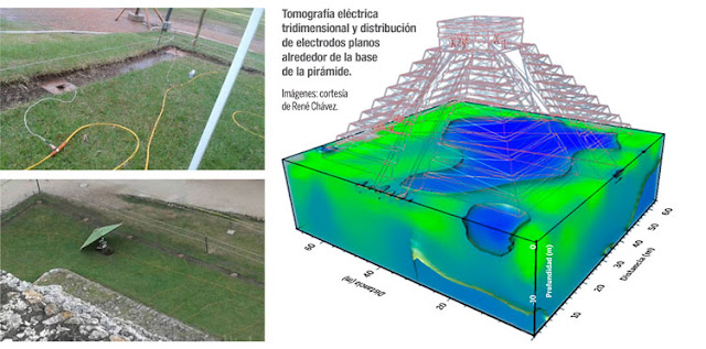 | Electric Tridimensional Tomography and electrode distribution around the pyramid (Image: SIPSE) |